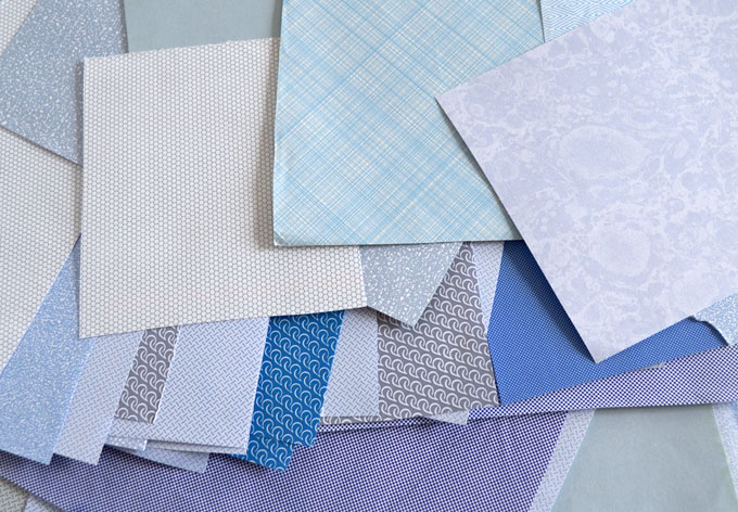Coupez des carrés dans vos papiers. Les dimensions dépendront de la taille des papiers que vous aurez collectionnés. Trouvez un tuto sur le net, par exemple ici. (Il y a aussi une vidéo)